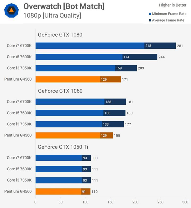 Hiệu năng của BVXL Pentium G4560 khi chơi Overwatch- rất hợp với GTX 1050 series